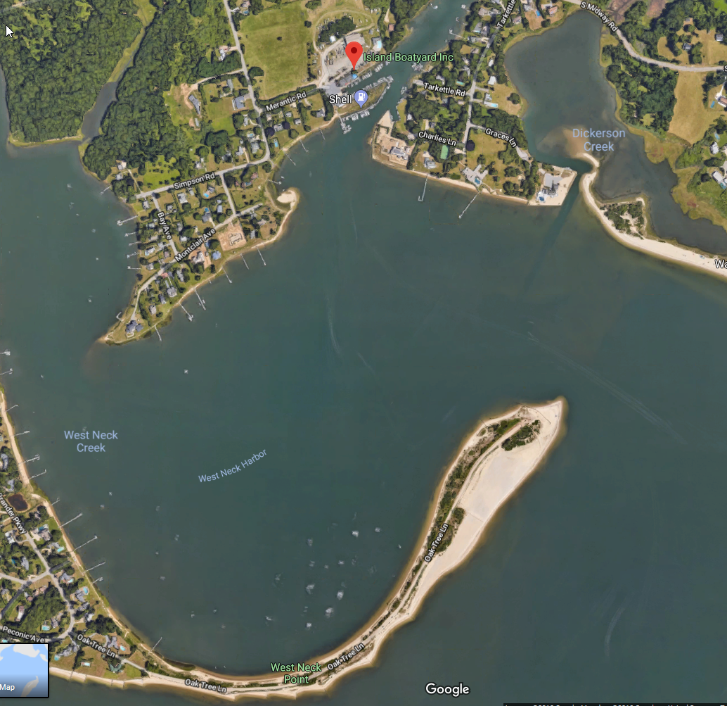 | Location: 63 South Menantic Road, Shelter Island, NY 11964 link (631)-749-3333 Description: "The Island Boatyard & Marina is located on Shelter Island, New York, between the north and south forks of Long Island. We are located in West Neck Harbor which is well known for its natural buffers that limit wave and wind action for your boat's protection as well as your comfort. The Marina has 80 slips that can accommodate power or sail boats from 15 feet to 60 feet. Seasonal transient slips are available as is our pool, restaurant, boat bar and free shuttle van that you can use to explore the Island. Gas and diesel from our newly installed tanks and fuel delivery system are available 7 days a week at our fuel dock as well the sanitation pump out." |